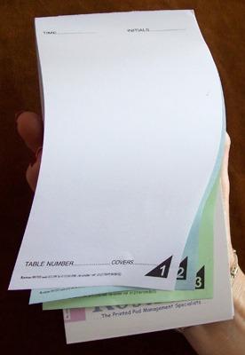 Constructed with a thick board back and scored fold-over writing shield, these pads offer durability and ease of use during service. These are unnumbered for flexible record keeping.